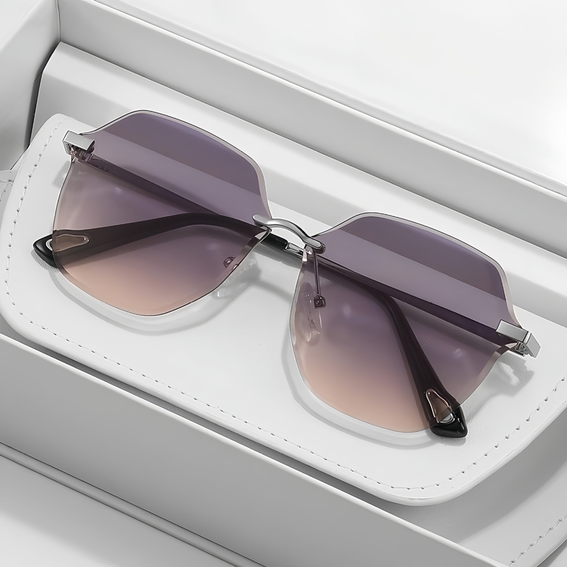 无框切边太阳镜女高级感潮浅色太阳眼镜防紫外线防晒墨镜