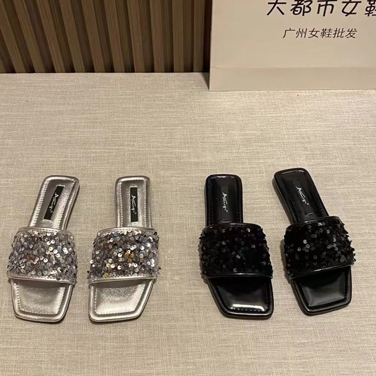 平底气质亮片凉拖鞋女鞋子外穿夏季软底银色大码一字拖鞋鞋
