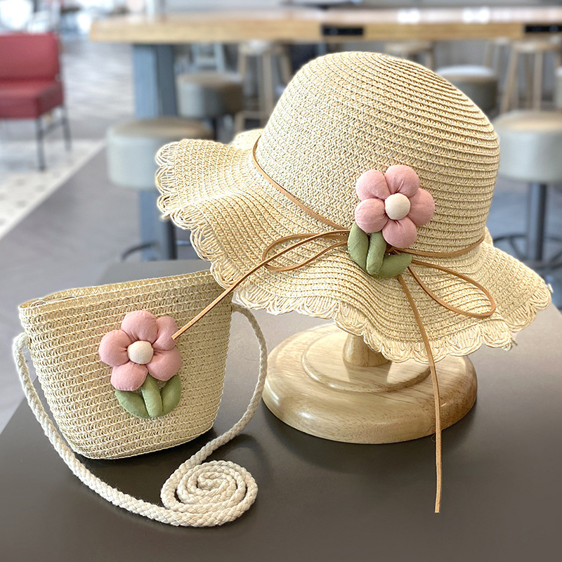 夏季女童遮阳草帽小女孩夏天大檐出游公主沙滩防晒帽子女宝渔夫帽