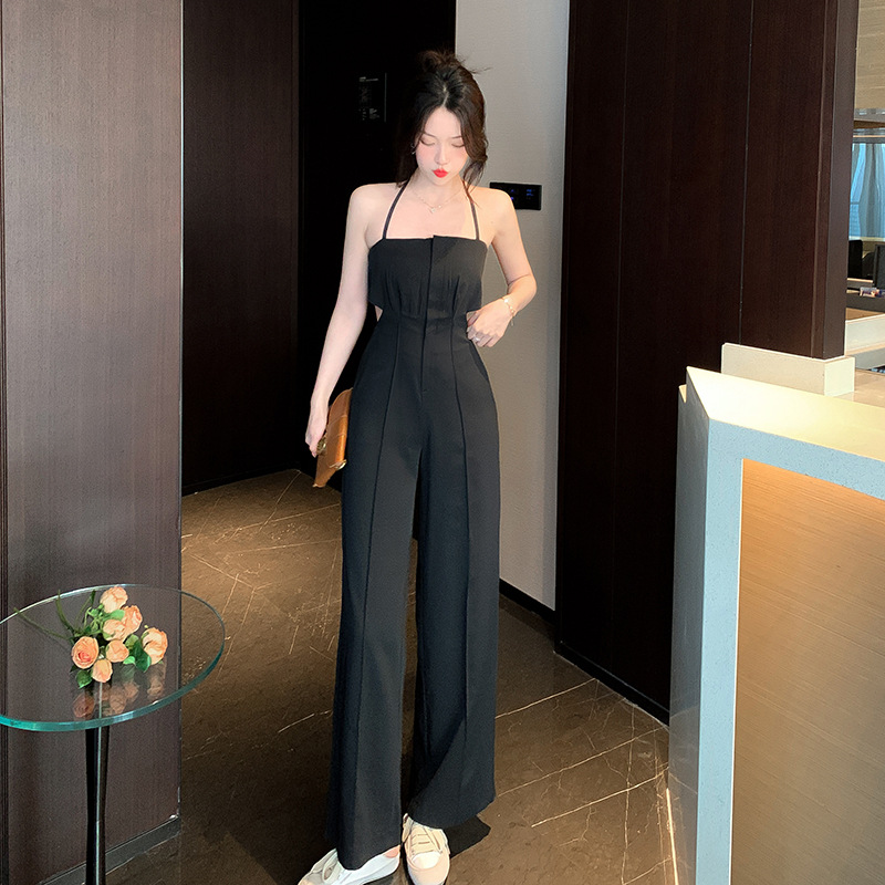 纯欲风吊带连体裤超修身阔腿裤长裤高腰简约优雅气质裤子