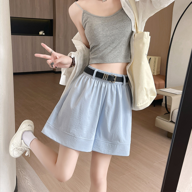 拼接短裤女夏休闲新款高腰显瘦西装三分裤运动宽松冰丝阔腿裤
