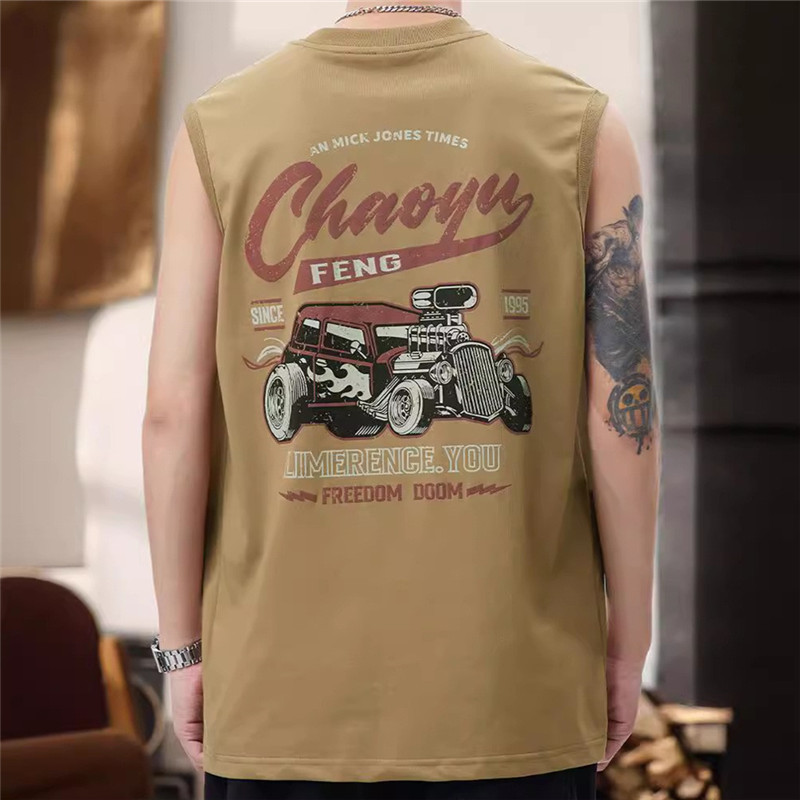 美式街头重磅无袖背心男痞帅印花圆领篮球运动坎肩夏季无袖T恤潮