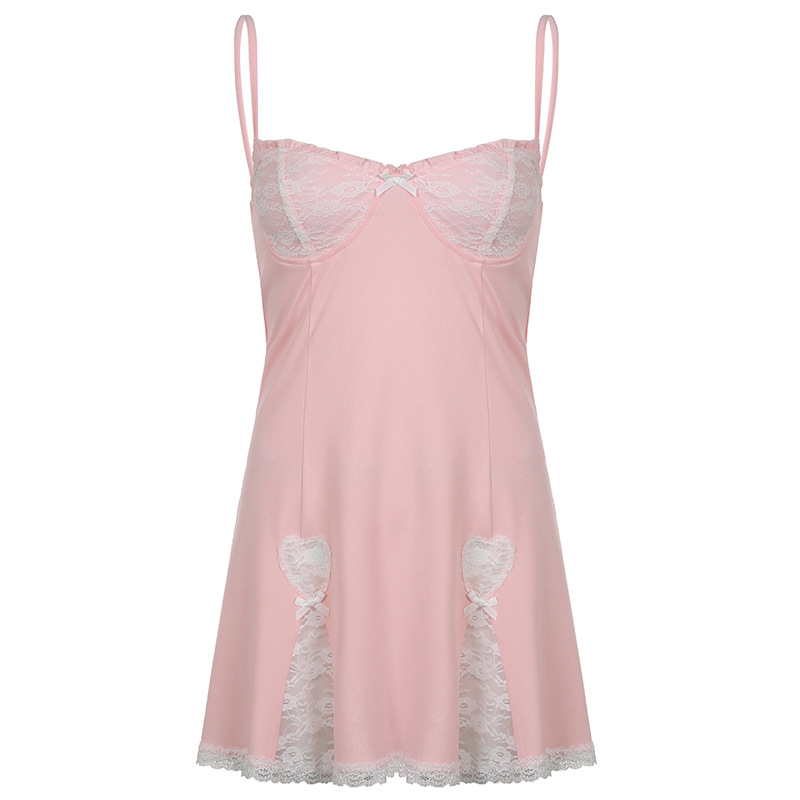 美式V领花边蕾丝吊带裙新款开叉蝴蝶结小性感辣妹连衣裙外穿
