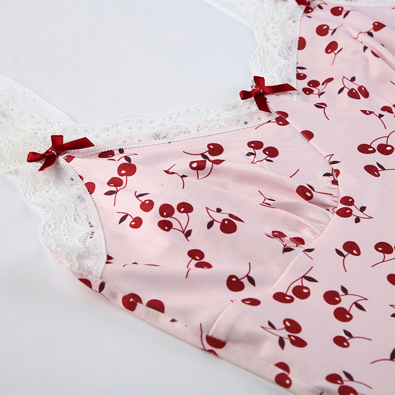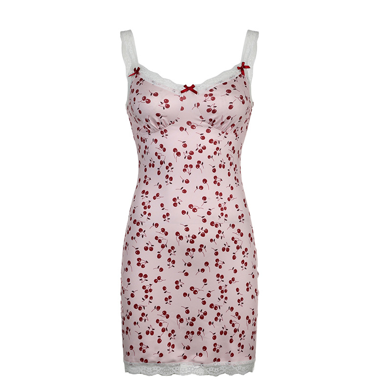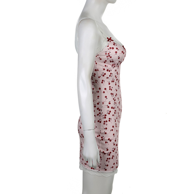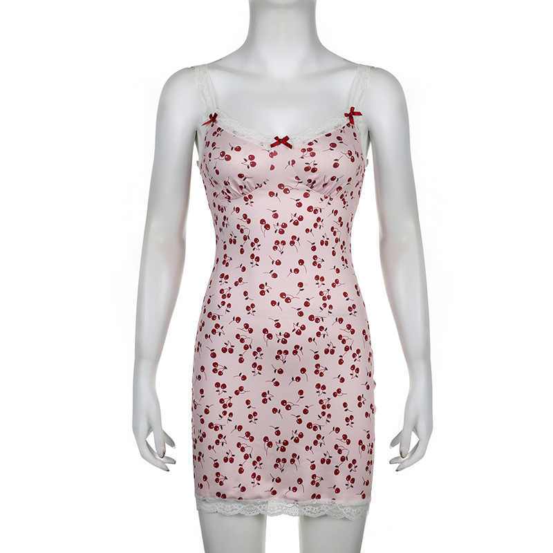 纯欲辣妹风小樱桃V领吊带裙ins风美式性感气质修身包臀短裙连衣裙
