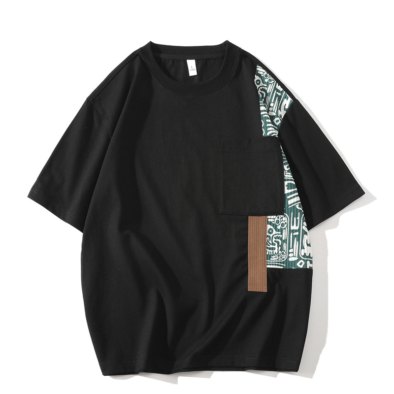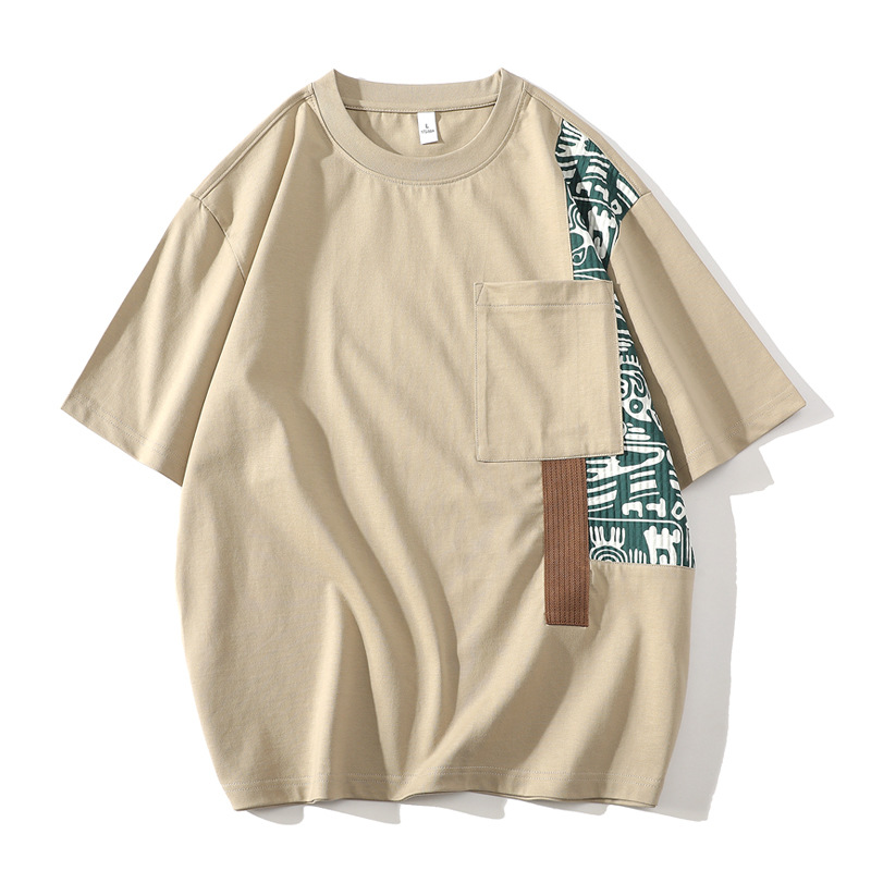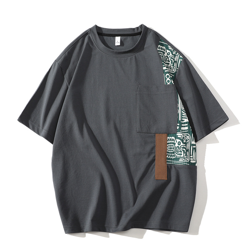 拼接短袖男T恤夏季新款工装风圆领上衣潮牌宽松休闲打底体恤半袖
