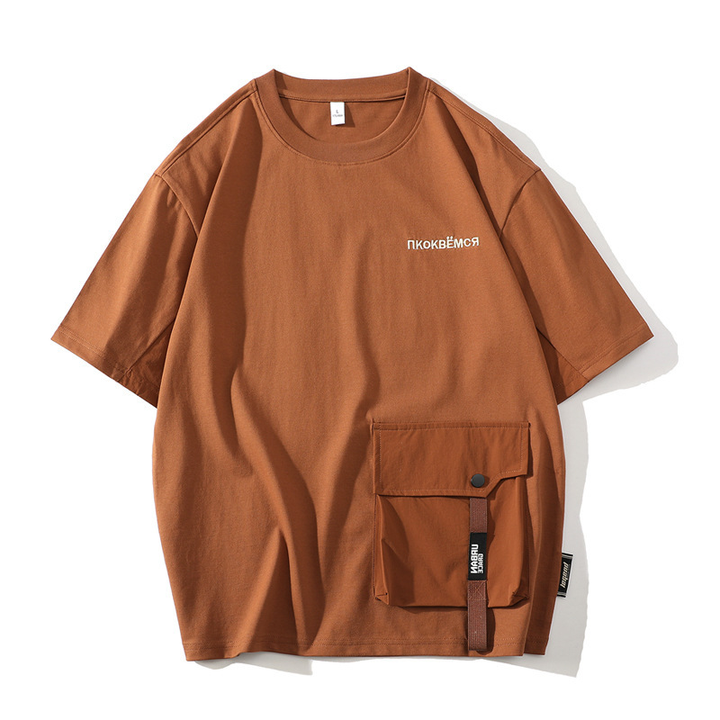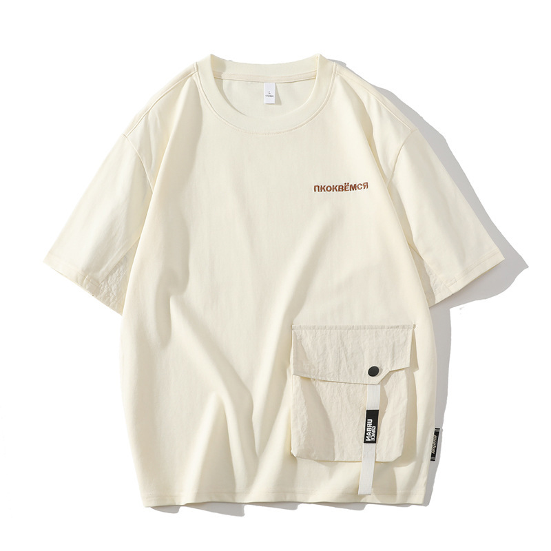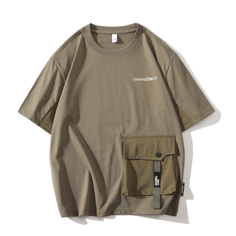 夏季口袋创意休闲五分半袖T恤男薄款透气体恤宽松圆领短袖t恤男士