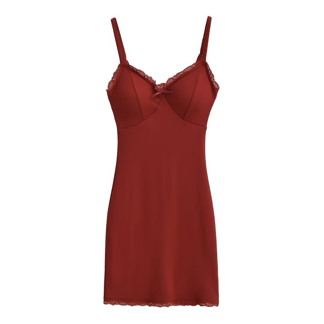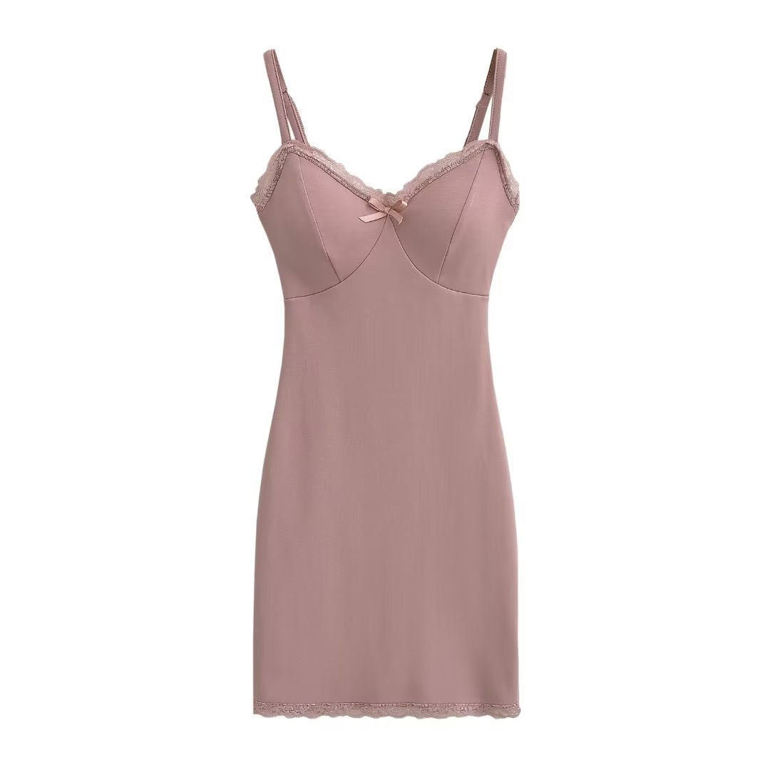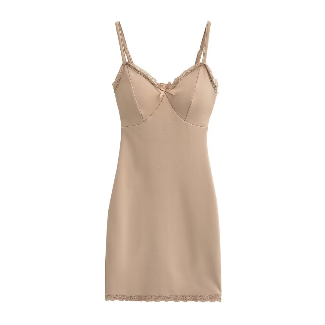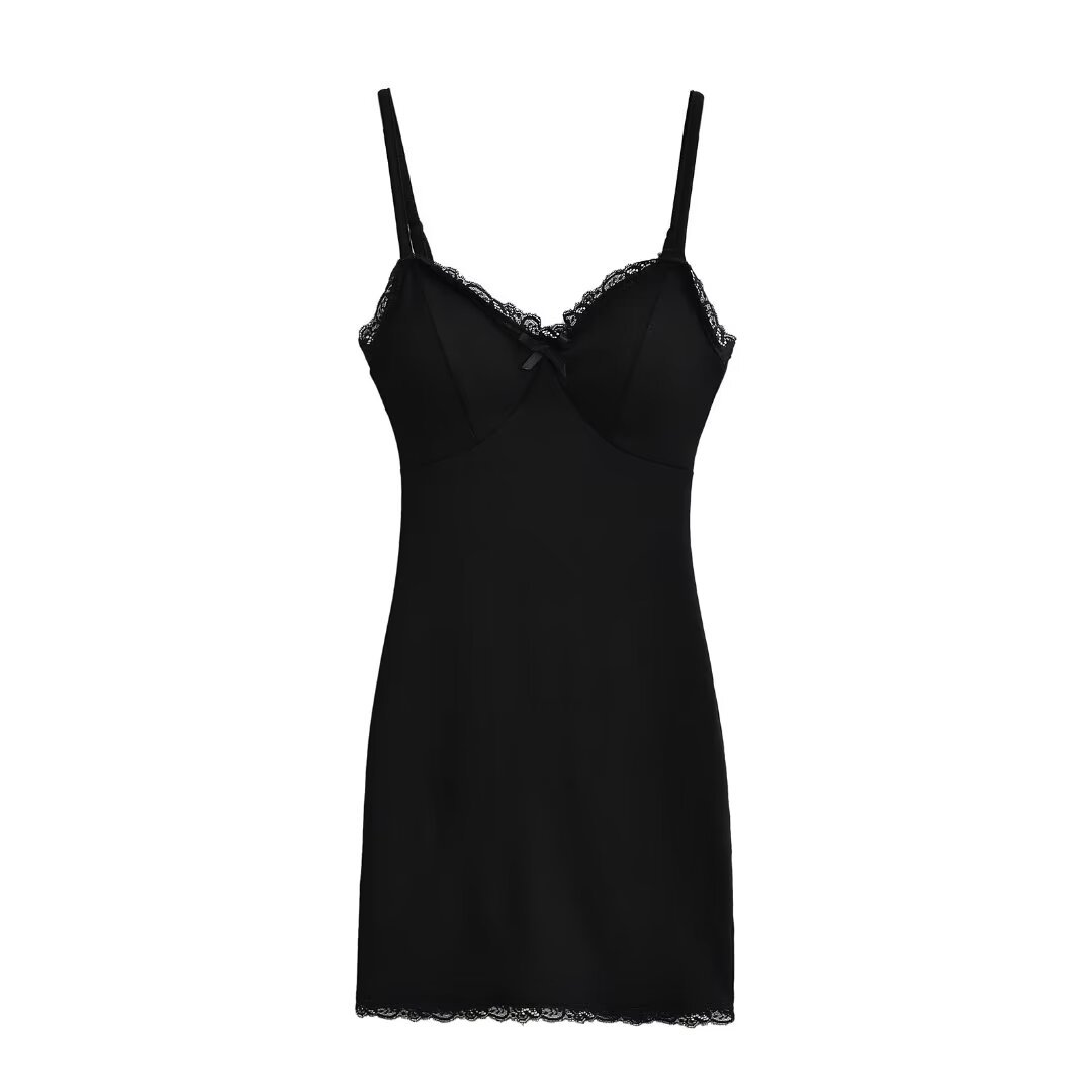 ins美式蕾丝边吊带裙女新款内搭裙磨毛修身包臀裙连衣裙