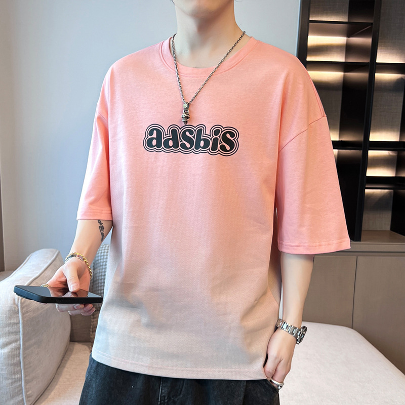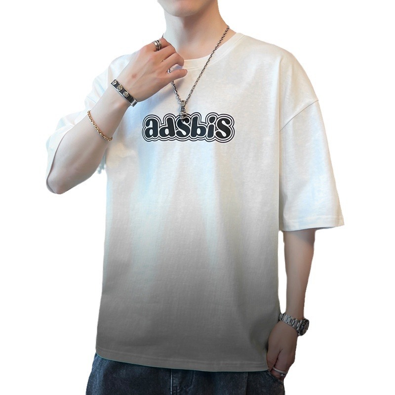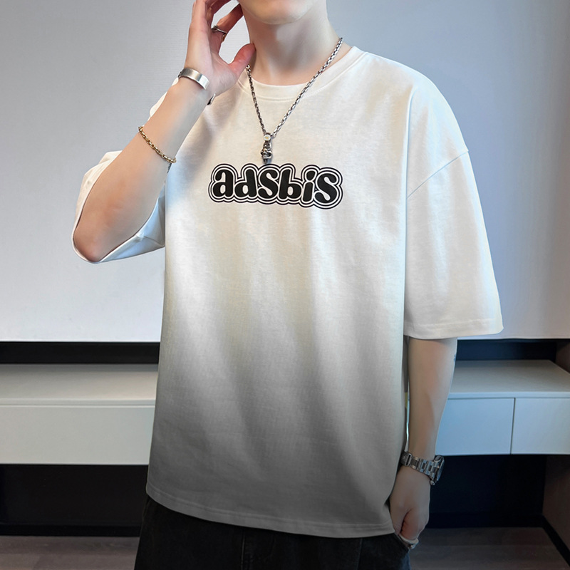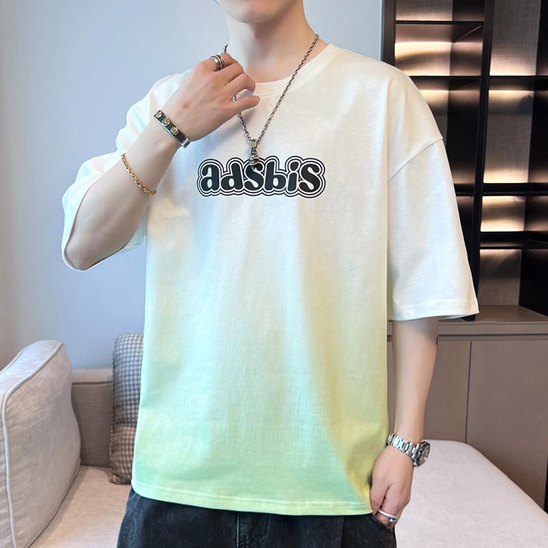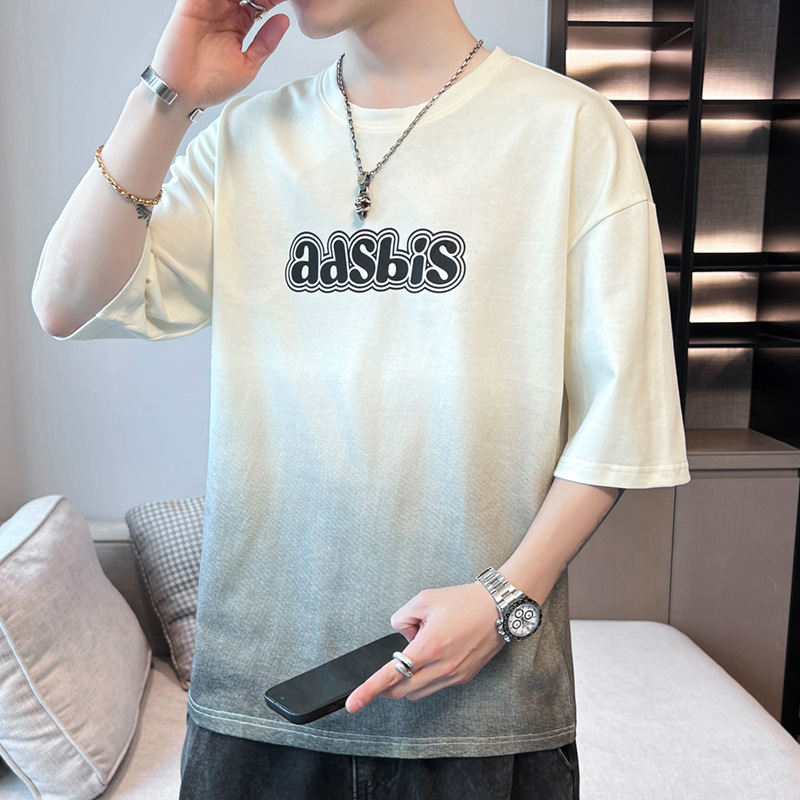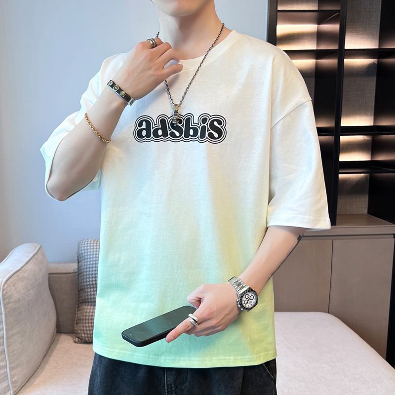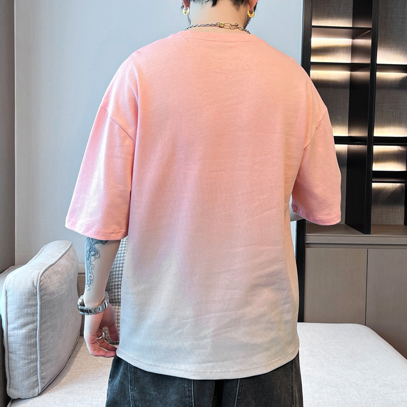 棉新款夏季男潮流宽松服潮牌学生短袖T恤上衣圆领渐变色五分