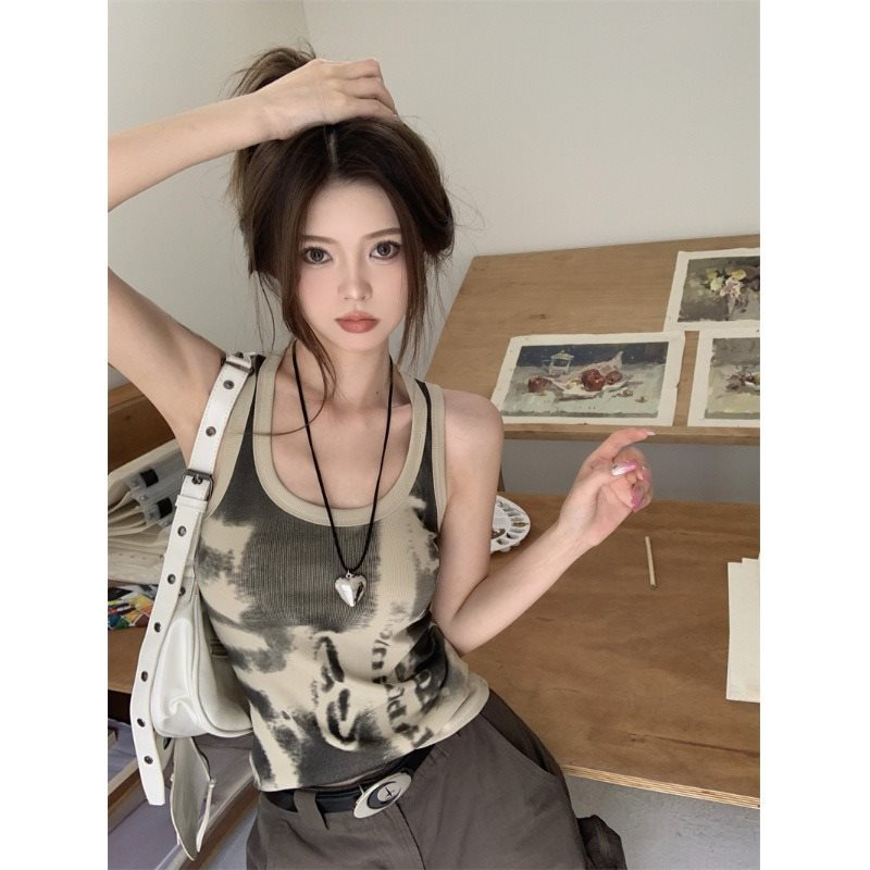 美式印花U领小背心女春季新款设计感辣妹修身显瘦内搭上衣