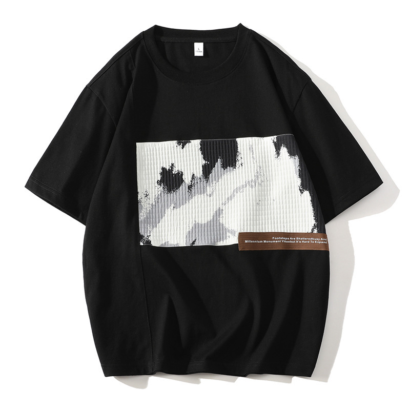 夏季休闲短袖t恤男士薄款透气宽松半袖t恤青年圆领五分袖T恤男装