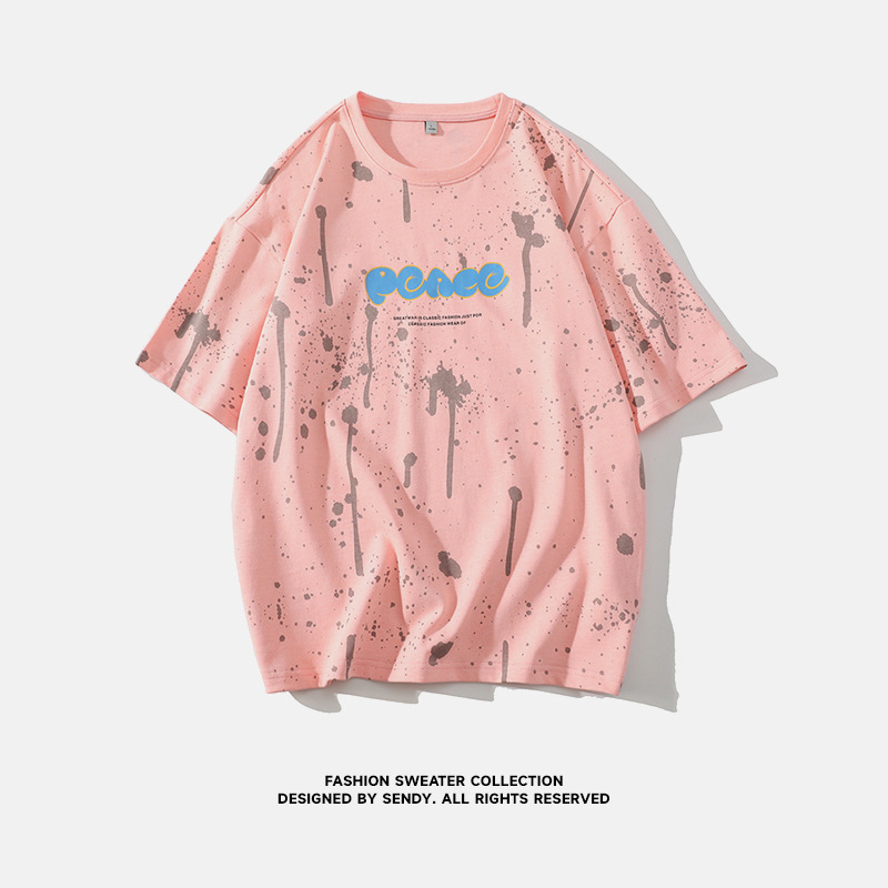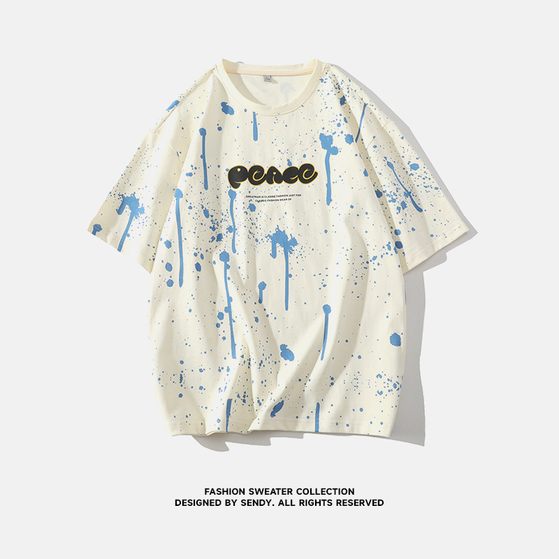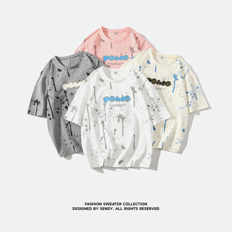 短袖t恤男新款夏季潮流宽松服潮牌学生短袖T恤五分袖半袖T恤