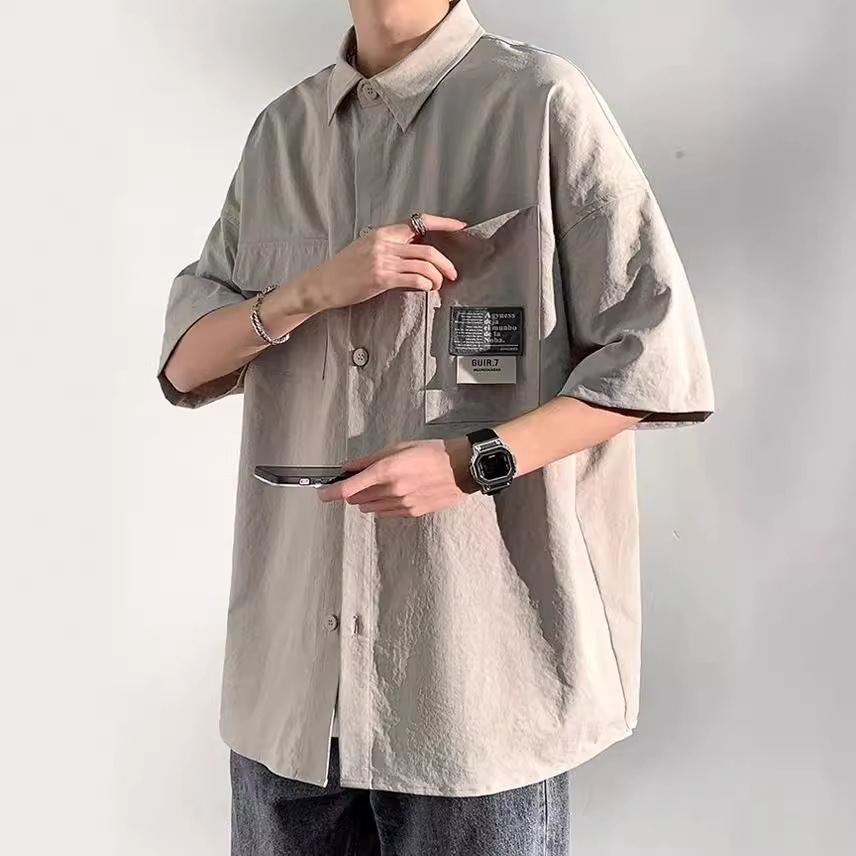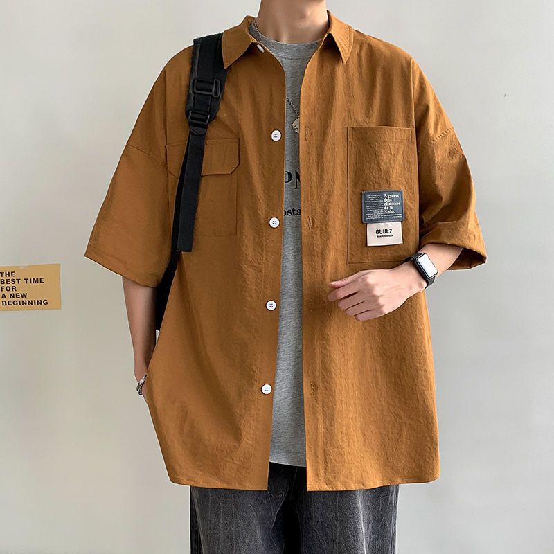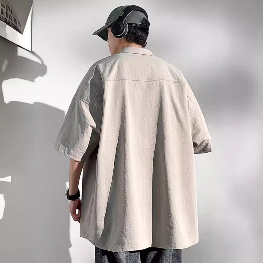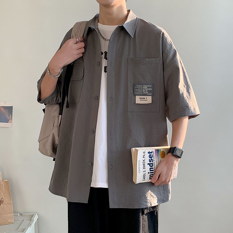 青少年日系薄款衬衫夏季七分袖衬衫男学生潮流外搭上衣男宽松新款
