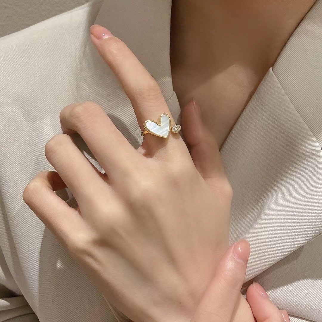 韩国东大门白色爱心戒指微镶锆石开口戒指甜美可爱小清新白色心形