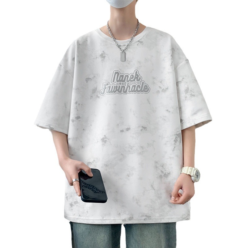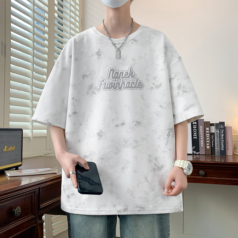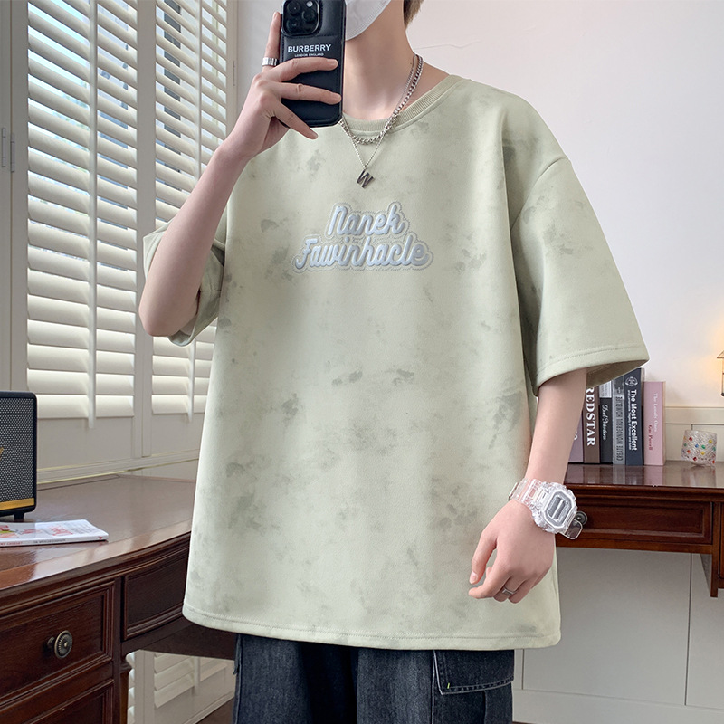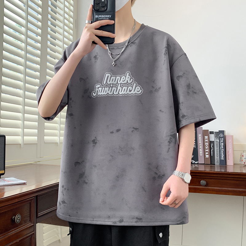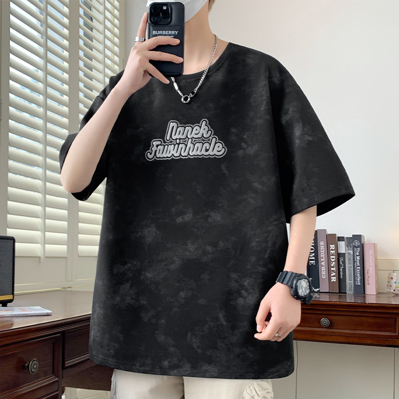 大码短袖T恤男士宽松立体钢印中袖圆领上衣加大加肥胖子休闲t恤衫