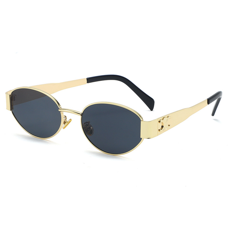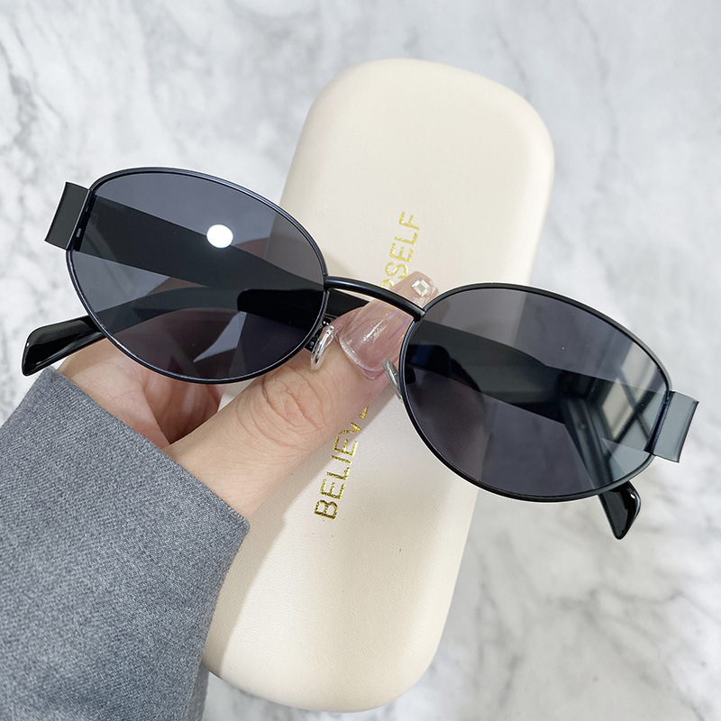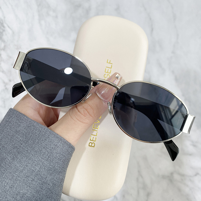 复古美式金属小框圆脸墨镜女高级感椭圆形防晒街拍凹造型太阳眼镜
