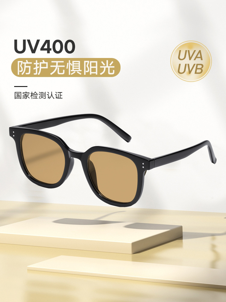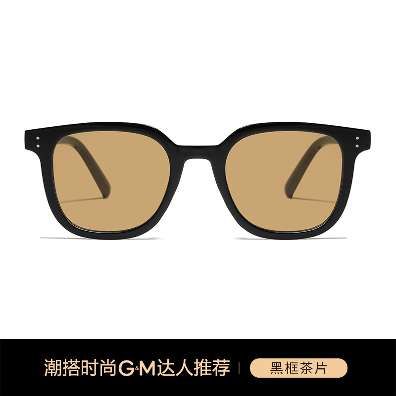 GM茶色墨镜女防紫外线ins黑框有色镜片可配近视太阳镜男韩版潮流