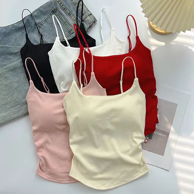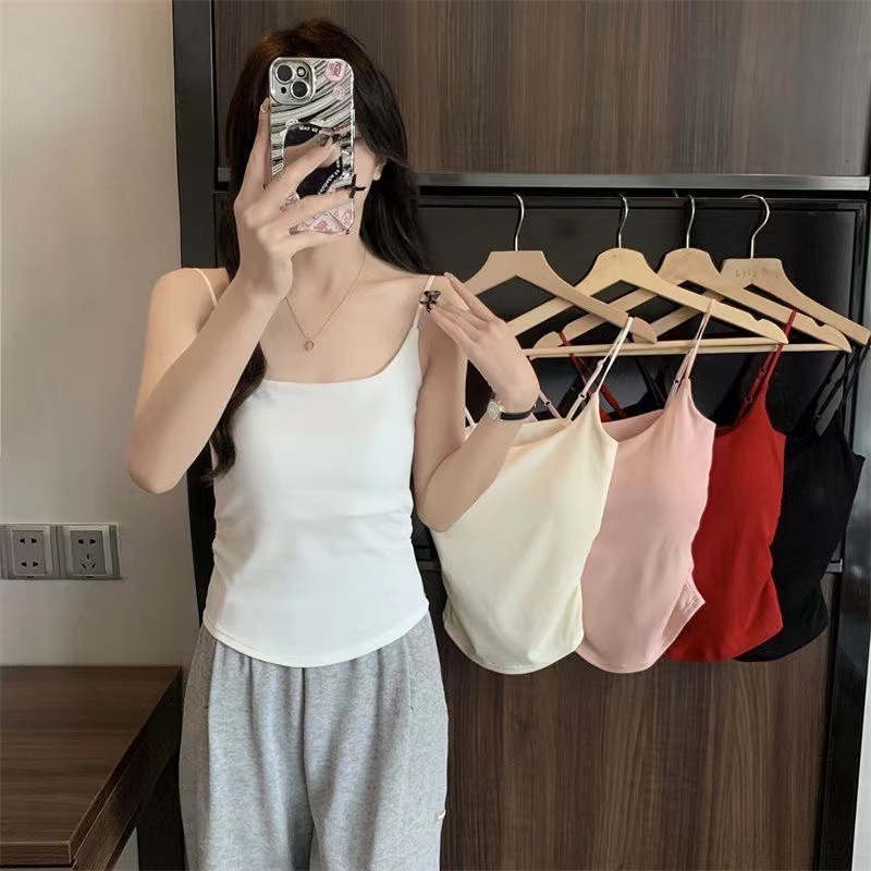 车缝棉纯欲甜辣褶皱吊带背心女 自带胸垫内搭外穿设计感修身上衣