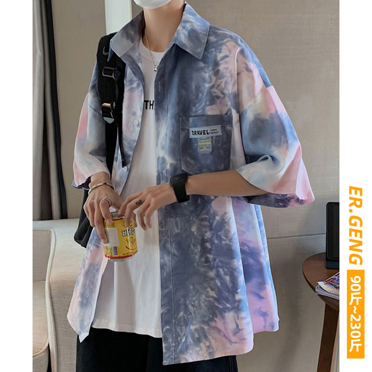 冰丝衬衫男士短袖夏季薄款设计感小众夏威夷花韩版日系痞
