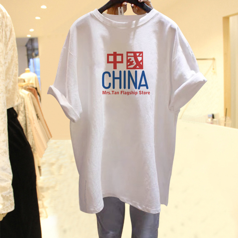 纯棉白T恤女装短袖中长款小个子宽松夏季薄款新款潮ins港风