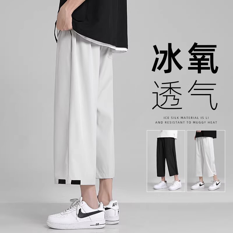 八分裤男士夏季薄款休闲裤子男款冰丝七分裤男生直筒速干运动男裤