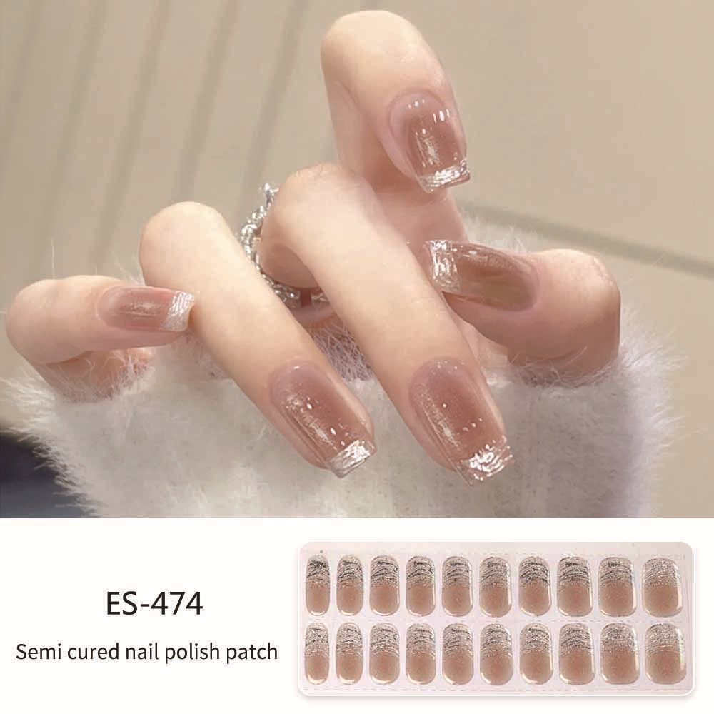 【ES474】20指半固化凝胶uv半烤美甲贴指甲贴片照灯变硬