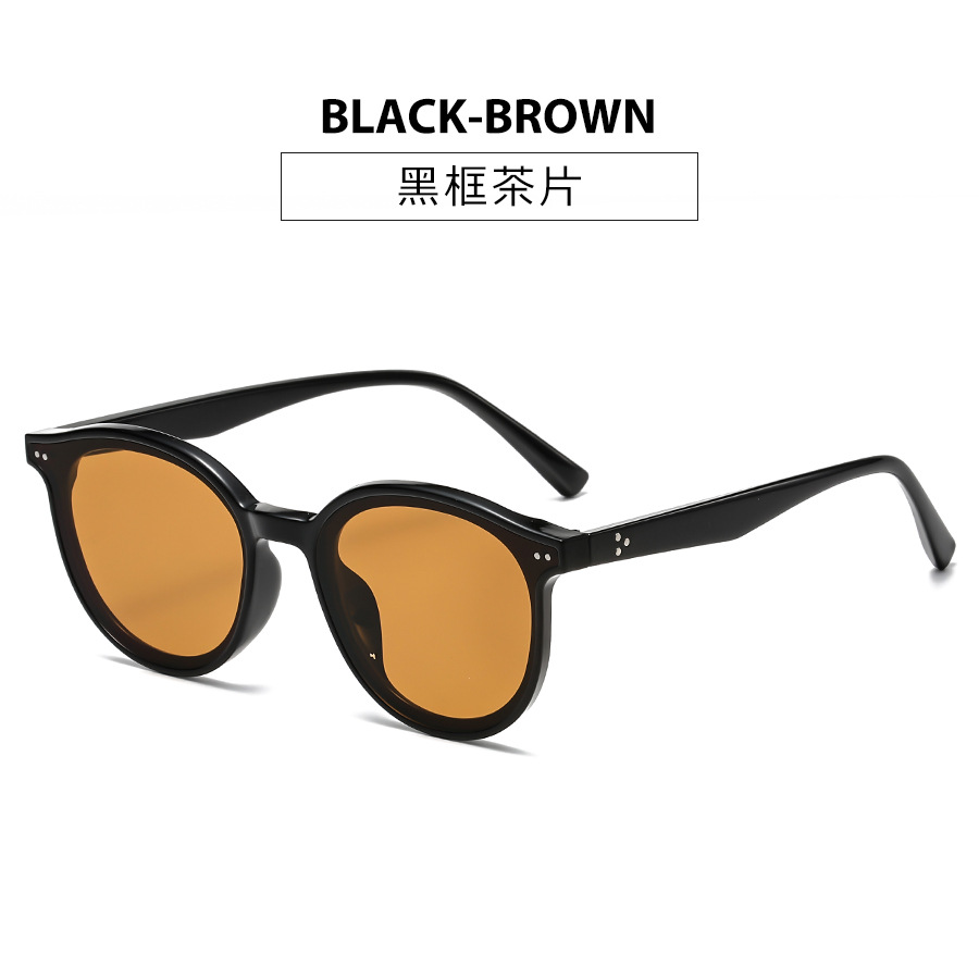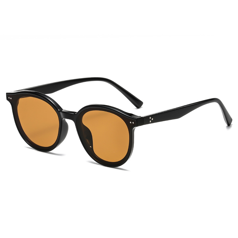 复古圆框铆钉墨镜女高级感ins黄色防晒遮阳太阳眼镜男防紫外线潮