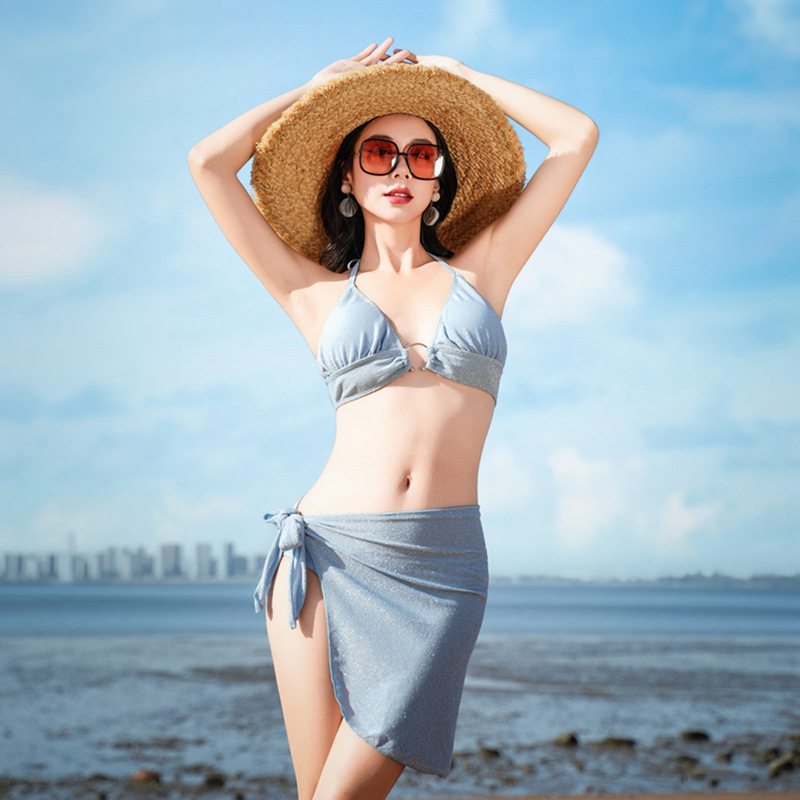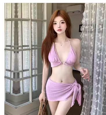 bikini比基尼分体三件套韩国性感温泉纯欲风泳衣女海边度假泳装女