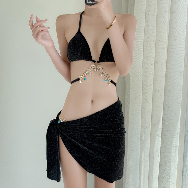 新款韩国ins泳衣女比基尼bikini分体三件套性感时尚温泉网红泳装