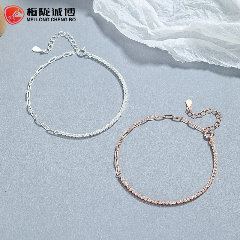 925纯银排钻盒子链手链女新款简约ins百搭手饰个性气质银饰品