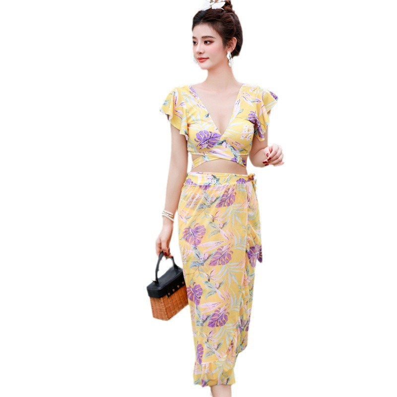 比基尼性感bikini分体三件套网红爆款温泉少女学生保守遮肚游泳装
