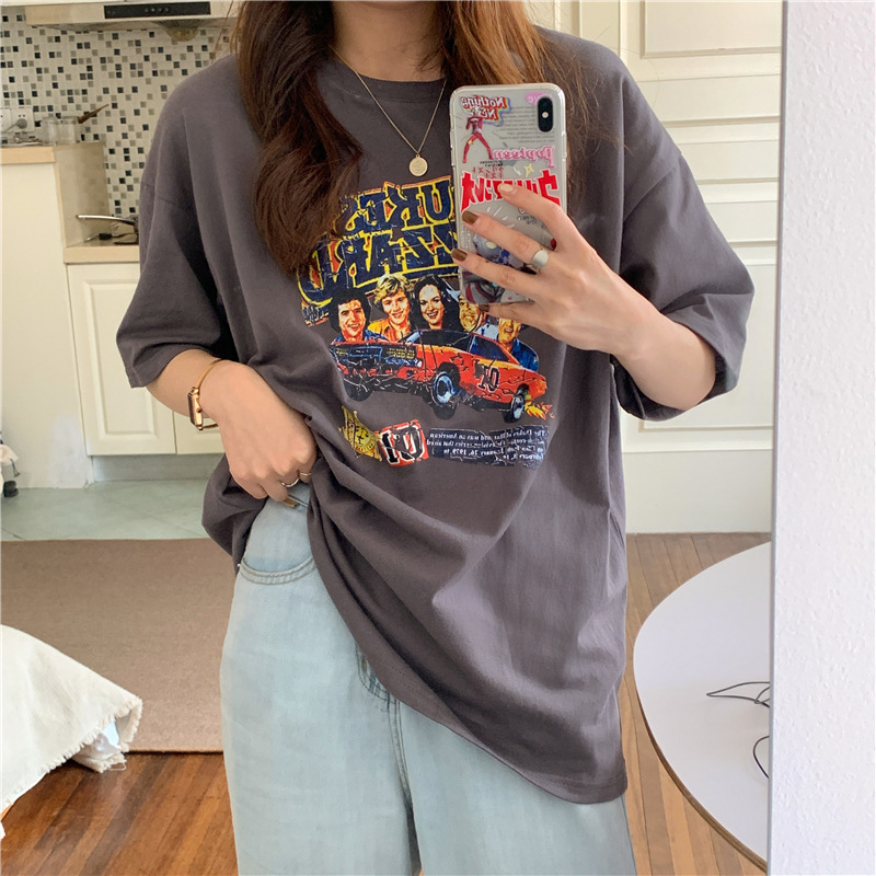 美式复古人物印花短袖T恤女春夏胖MM宽松显瘦打底衫欧货时尚上衣