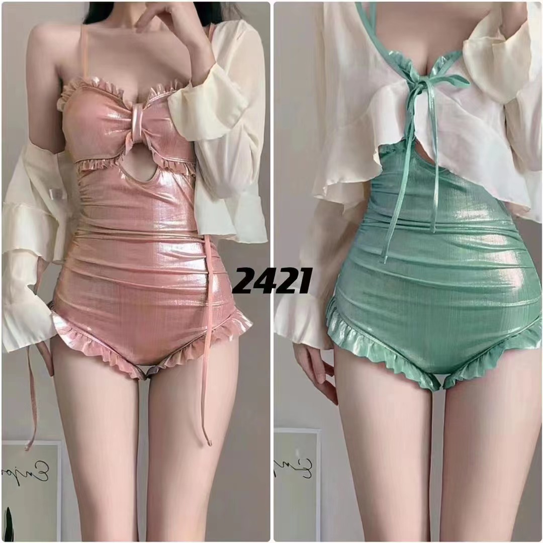 新款仙气泳衣女连体平角保守显瘦遮肚两件套修身高腰温泉泳装