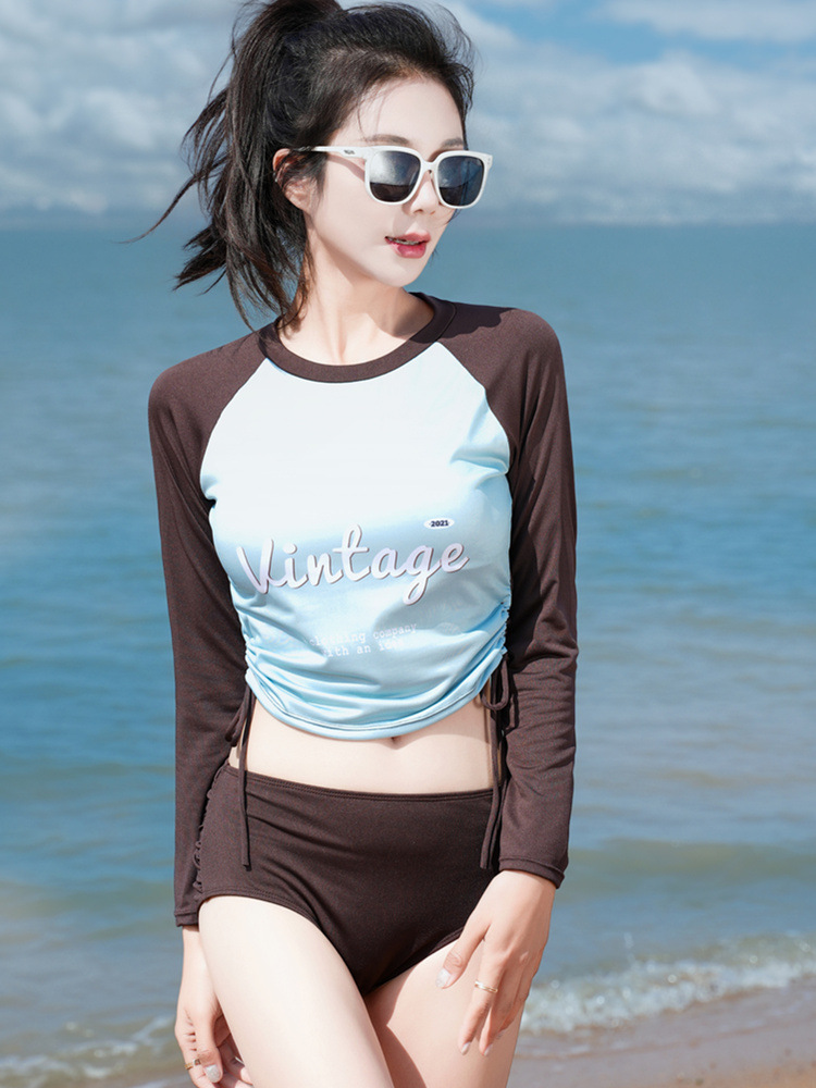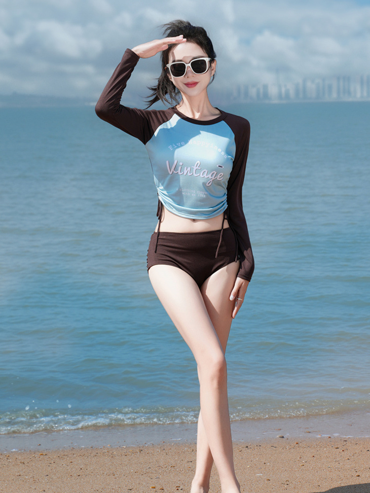 甜心学妹泳衣女分体两件套保守显瘦遮肚温泉长袖少女学生运动泳装