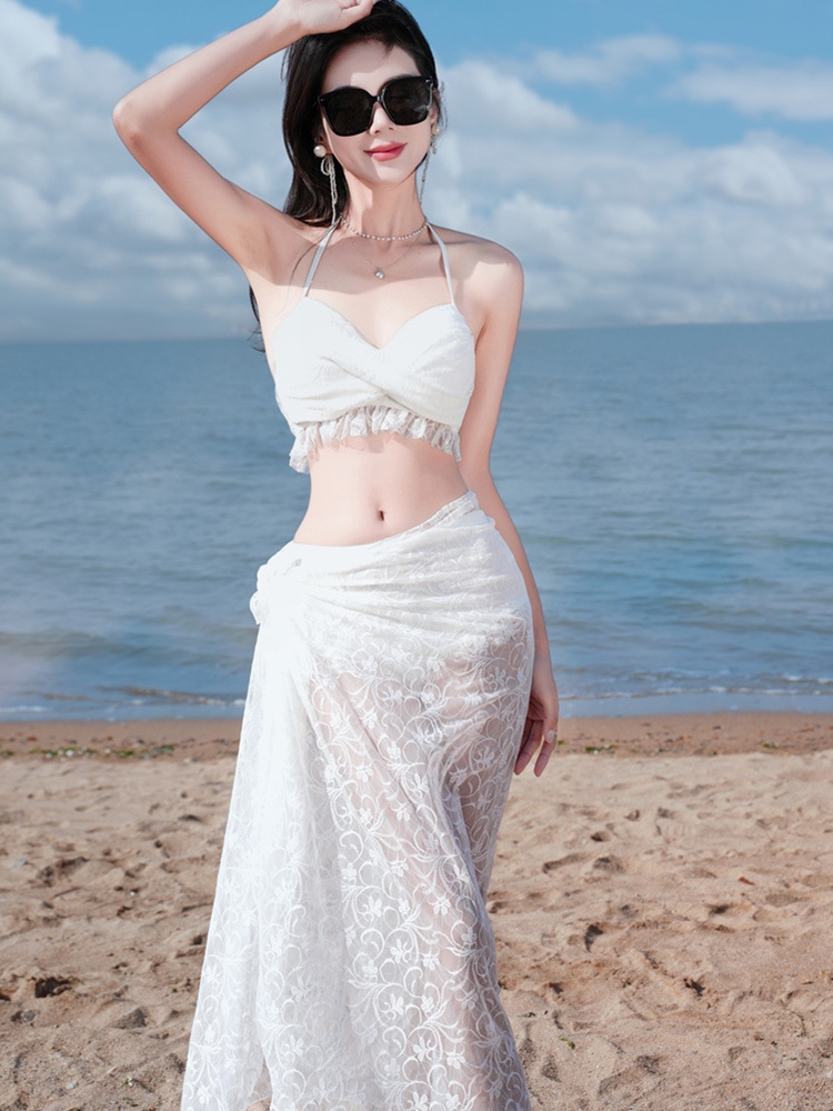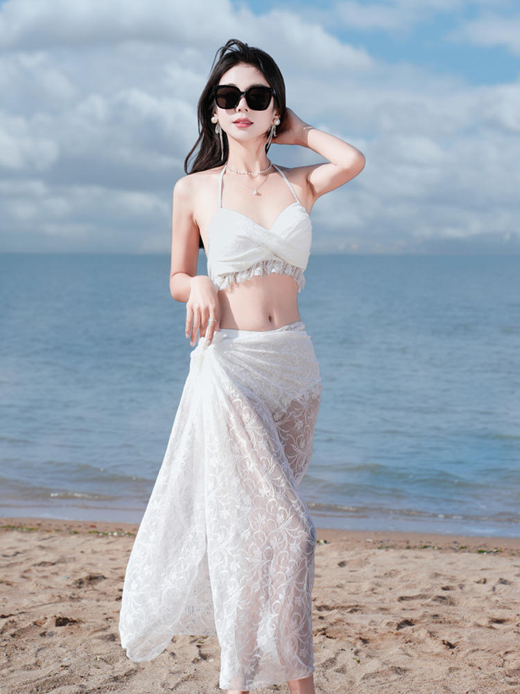 【气场女王】bikini比基尼分体性感三件套游泳衣女蕾丝度假泳装女