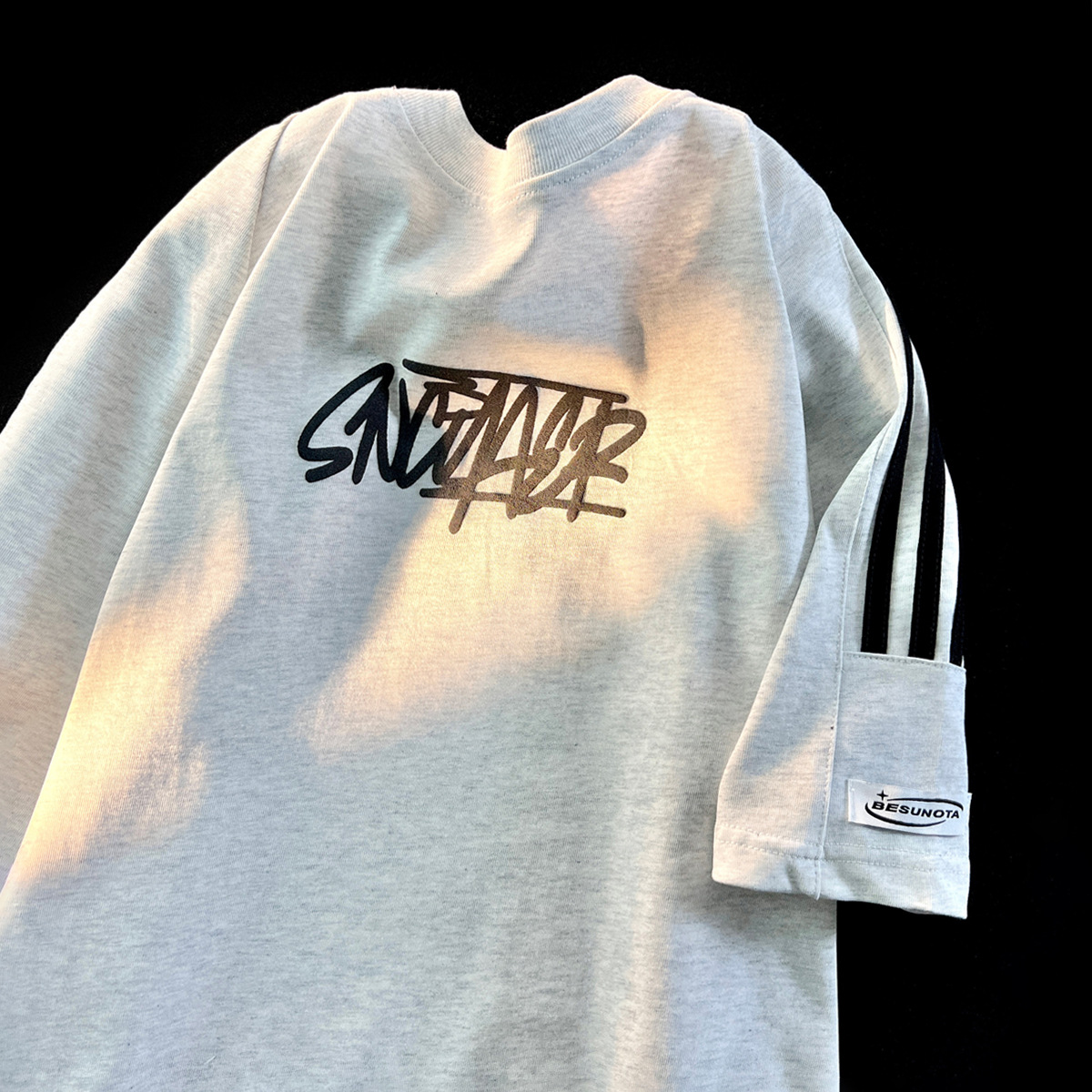 设计感小众三条杠短袖T恤女夏美式复古潮牌宽松显瘦半袖体恤上衣