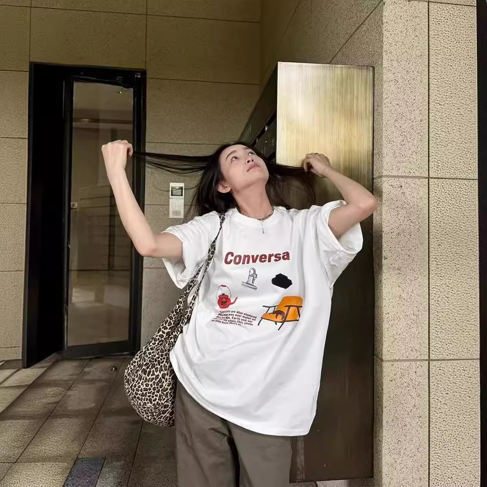 夏季新款卡通印花纯棉短袖T恤女美式复古宽松休闲ins风上衣潮