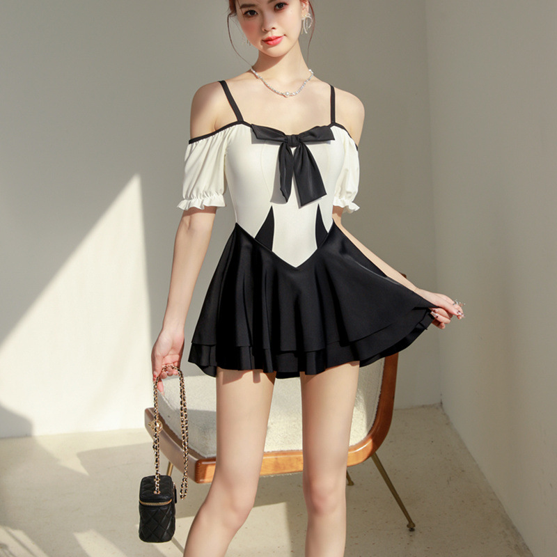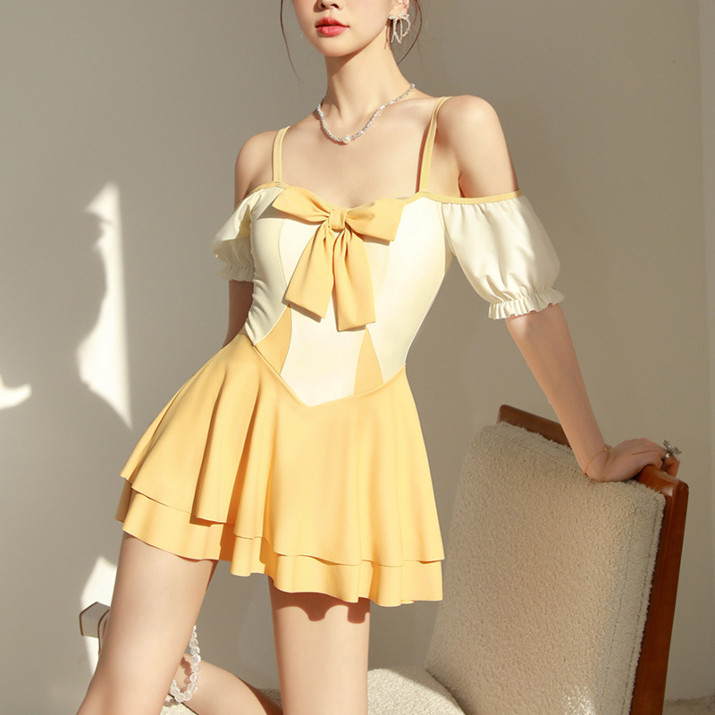 【元气少女】新款游泳衣女连体平角保守显瘦遮肚大码网红爆款泳装
