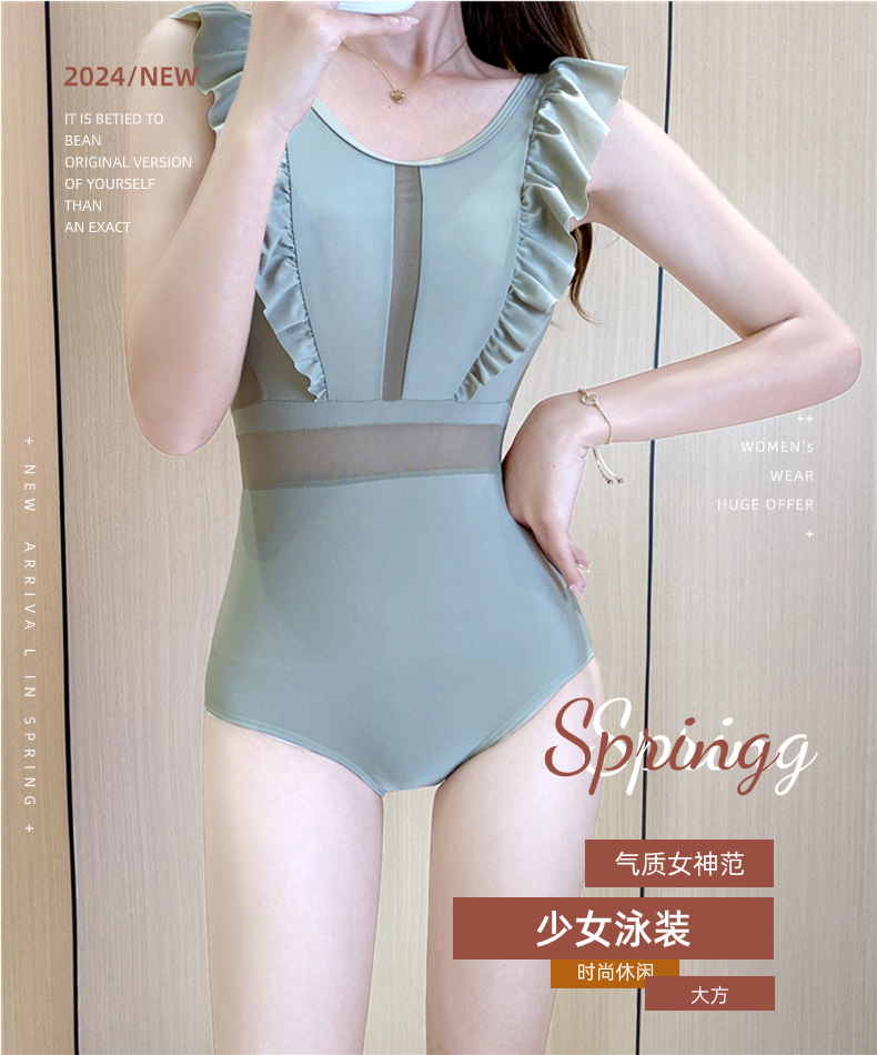新款游泳衣女连体平角保守显瘦遮肚性感温泉气质学生度假泳装