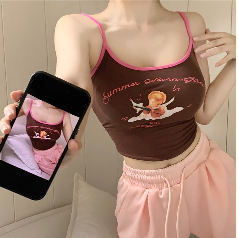 辣妹性感吊带背心休闲打底衫纯欲显瘦印花短款上衣