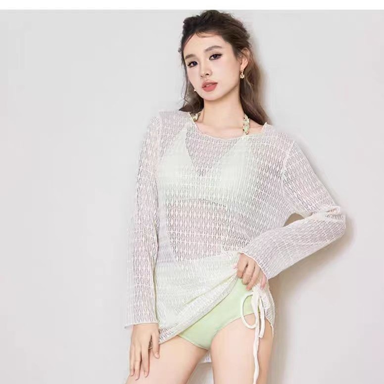 性感bikini 比基尼分体三件套带罩衫网红少女显瘦纯欲温泉泳衣女