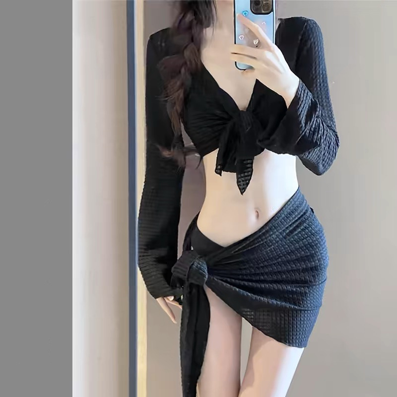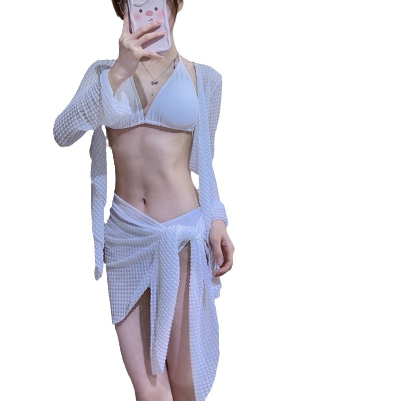 新款比基尼温泉性感bikini温泉四件套游泳衣女网红度假泳装女