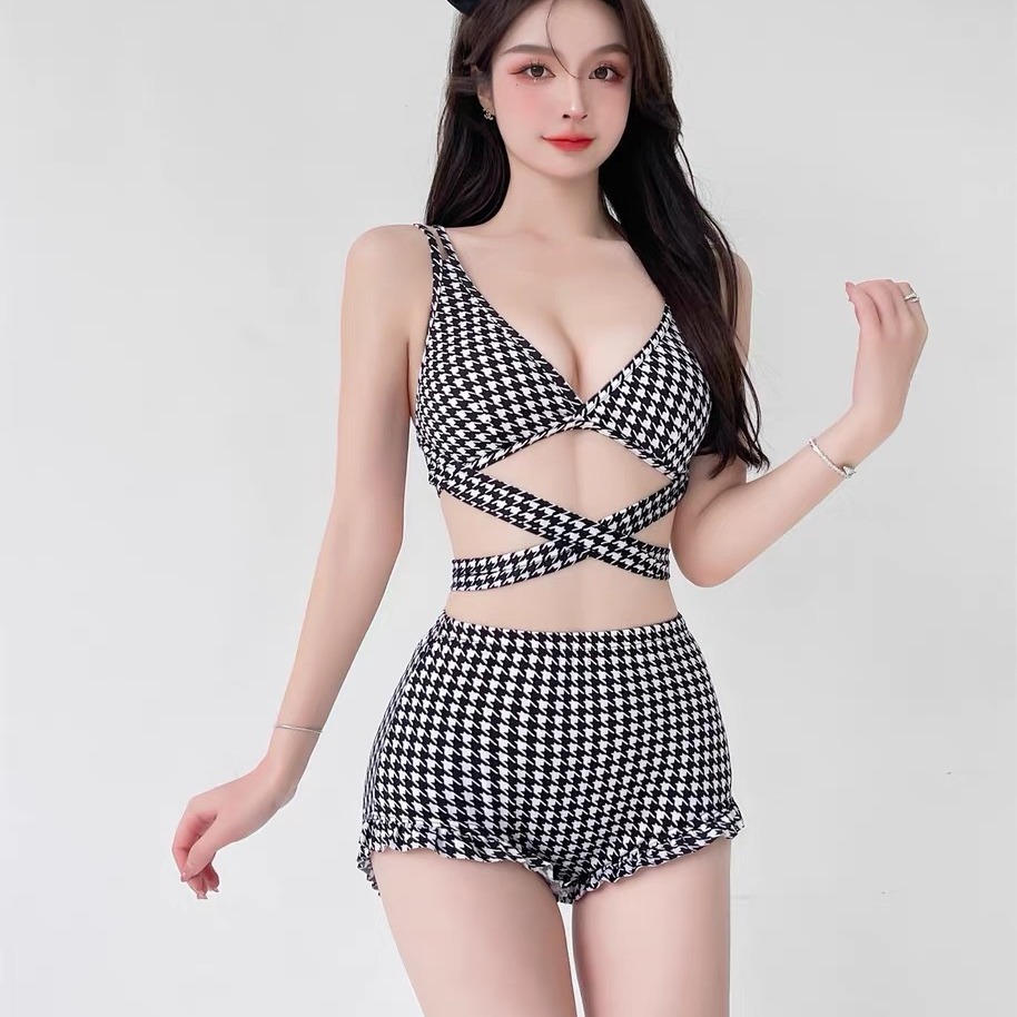 bikini比基尼分体两件套性感温泉度假游泳衣女度假保守遮肚泳装女