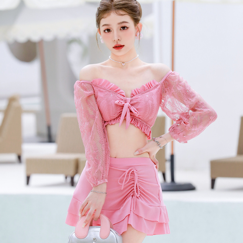 【千金感】仙气游泳衣女分体两件套保守显瘦遮肚蕾丝性感长袖泳装
