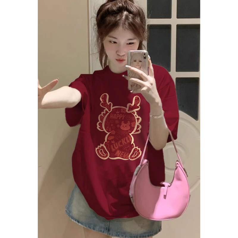 本命年龙年衣服短袖t恤女新款打底衫高级感超好看宽松上衣ins