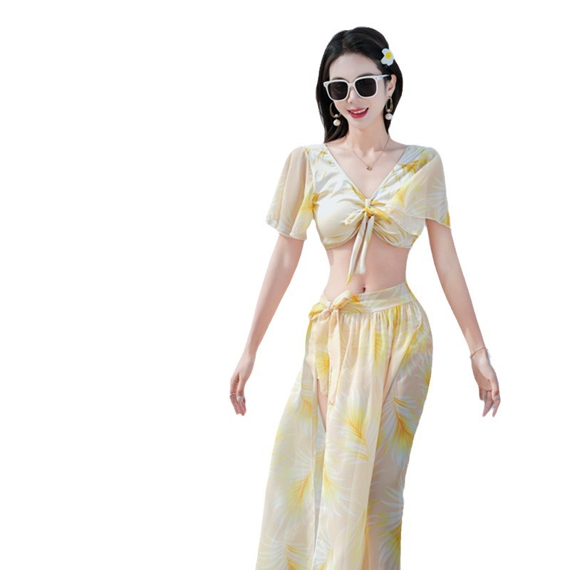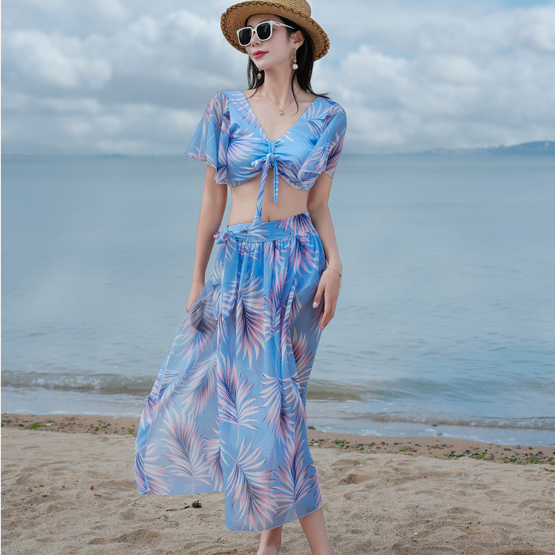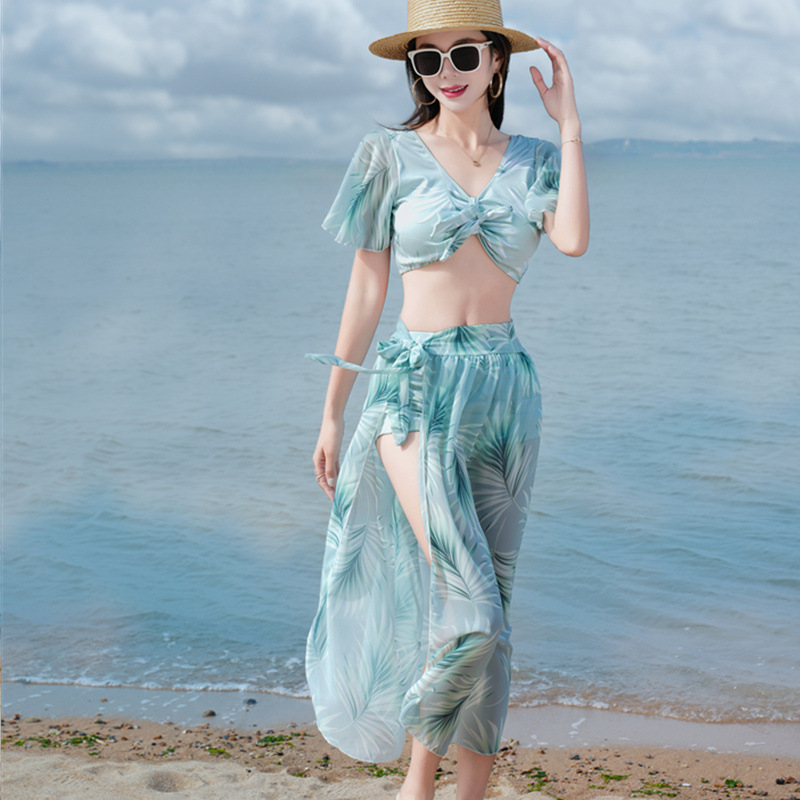 【白山茶】bikini比基尼海边度假游泳衣女分体三件套网红性感泳装