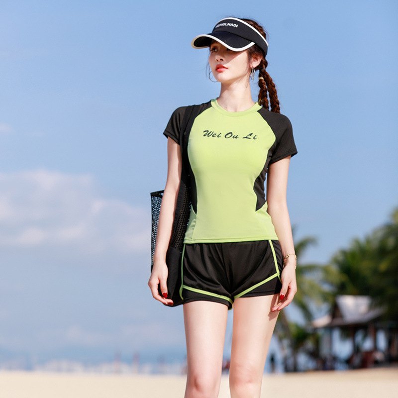 新款游泳衣女分体运动训练少女学生保守显瘦遮肚温泉平角泳装