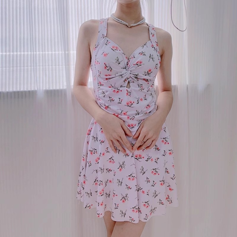 新款泳衣女连体平角保守显瘦遮肚韩国小清新少女学生温泉泳装