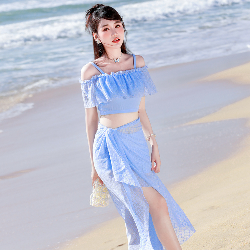 bikini比基尼分体三件套新款游泳衣女显瘦遮肚高级感网红泳装