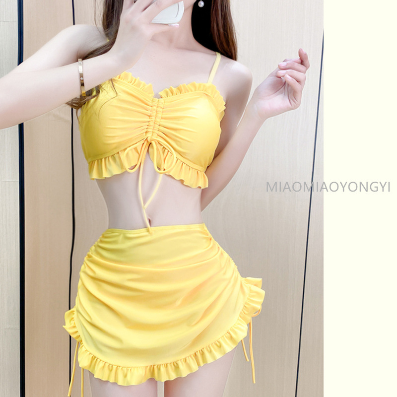 【清蓝】比基尼bikini分体三件套性感网红高级感保守温泉度假泳装