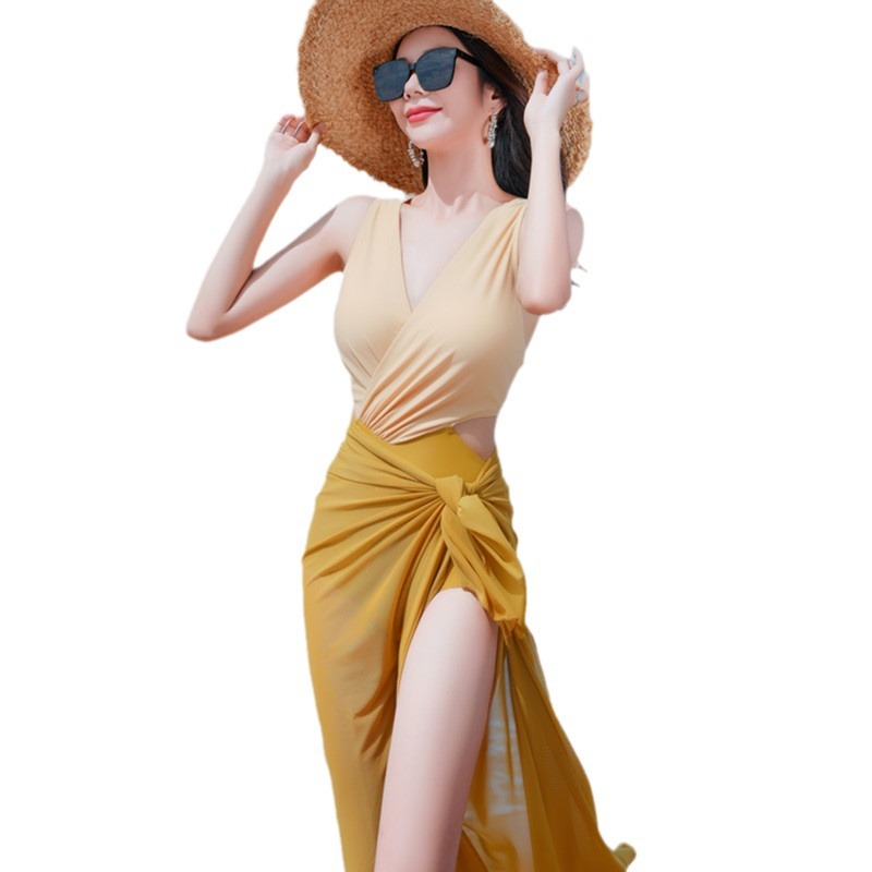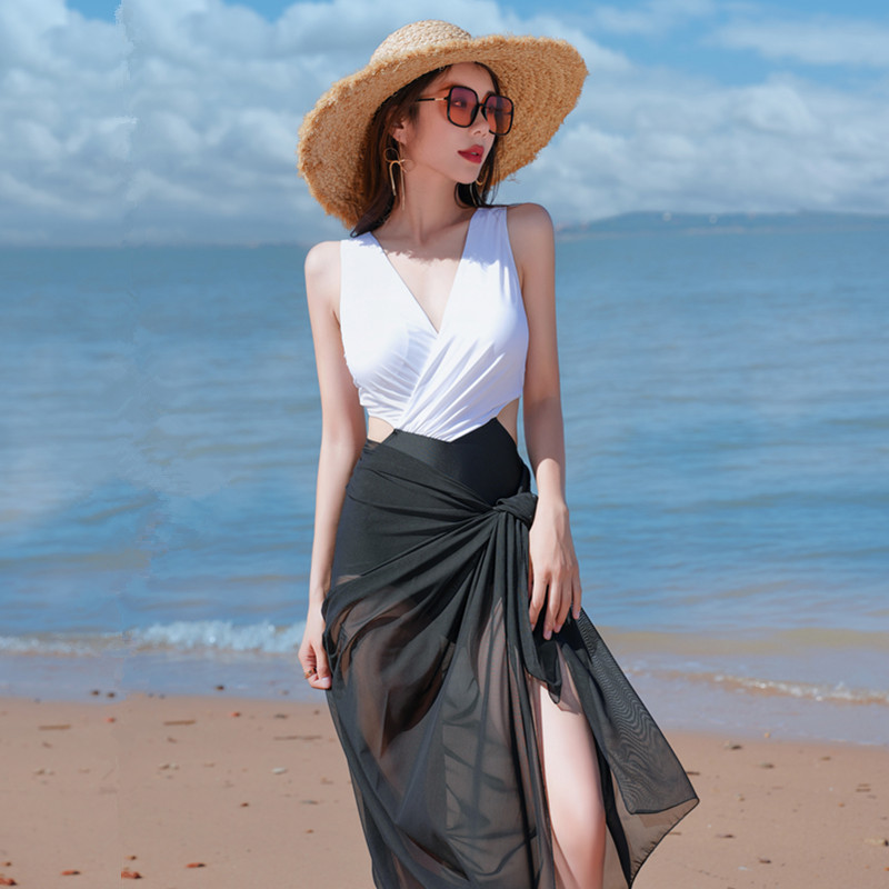 新款泳衣女连体平角保守遮肚比基尼bikini简约时尚高级感温泉泳装